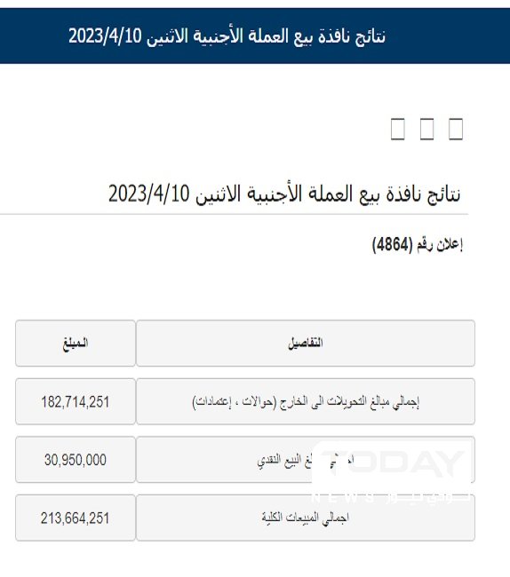 انخفضت مبيعات البنك المركزي في مزاد اليوم الاثنين، إلى 213 مليون دولار.