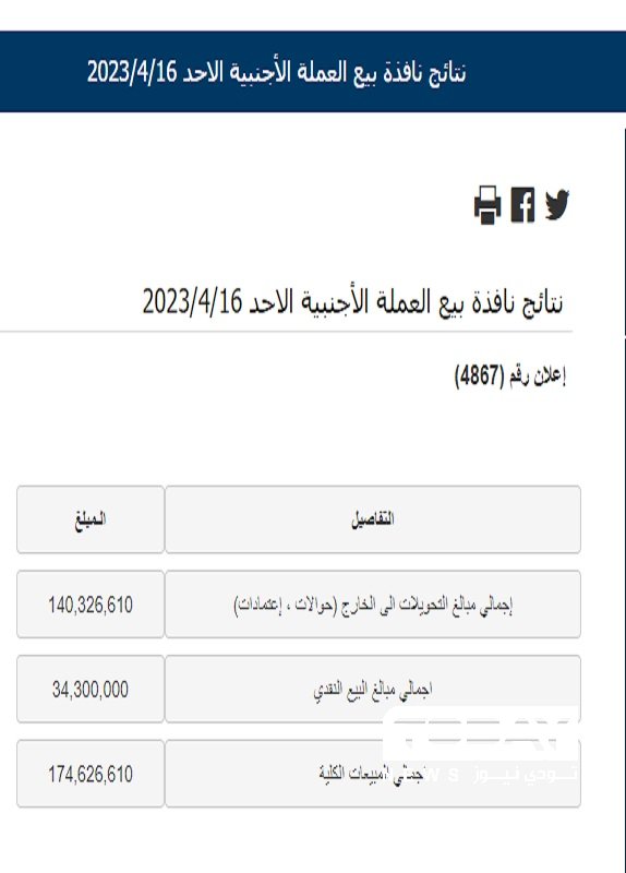 اليوم الأحد : ارتفاع مبيعات البنك المركزي إلى أكثر من 174 مليون دولار
