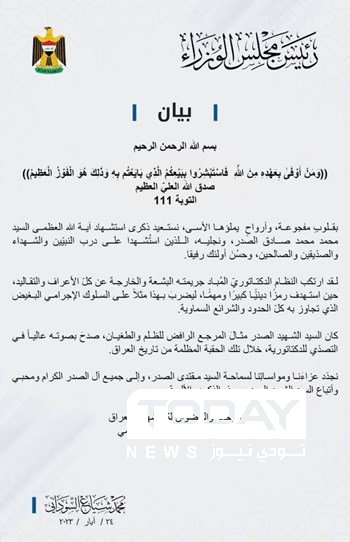 السوداني يعزي بذكرى استشهاد الصدر ونجليه