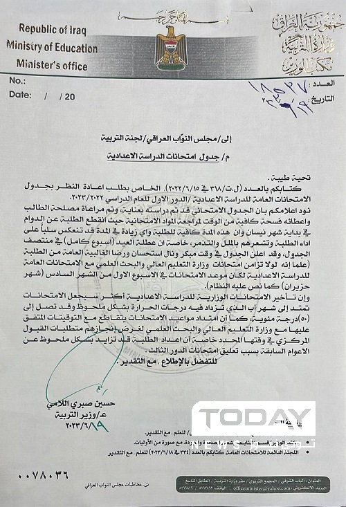 وقال النائب الأول لرئيس لجنة التربية النيابية، محمود حسين القيسي في بيان له، إن "وزارة التربية حسمت الجدل رسميا بخصوص تأجيل امتحانات الدراسة الإعدادية".