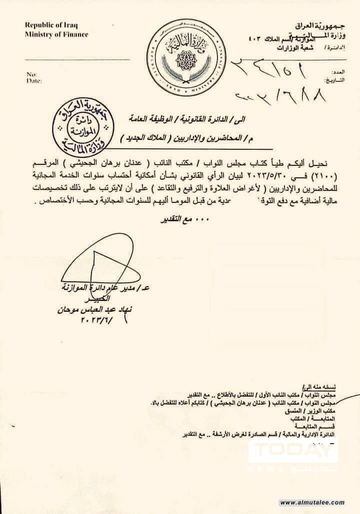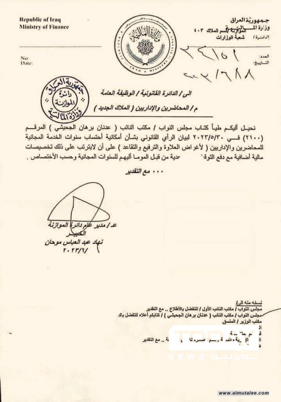 اشترطت وزارة المالية ،اليوم الإثنين، دفع التوقيفات التقاعدية للمحاضرين المجانيين من أجل احتساب سنوات خدمتهم المجانية لاغراض التقاعد.