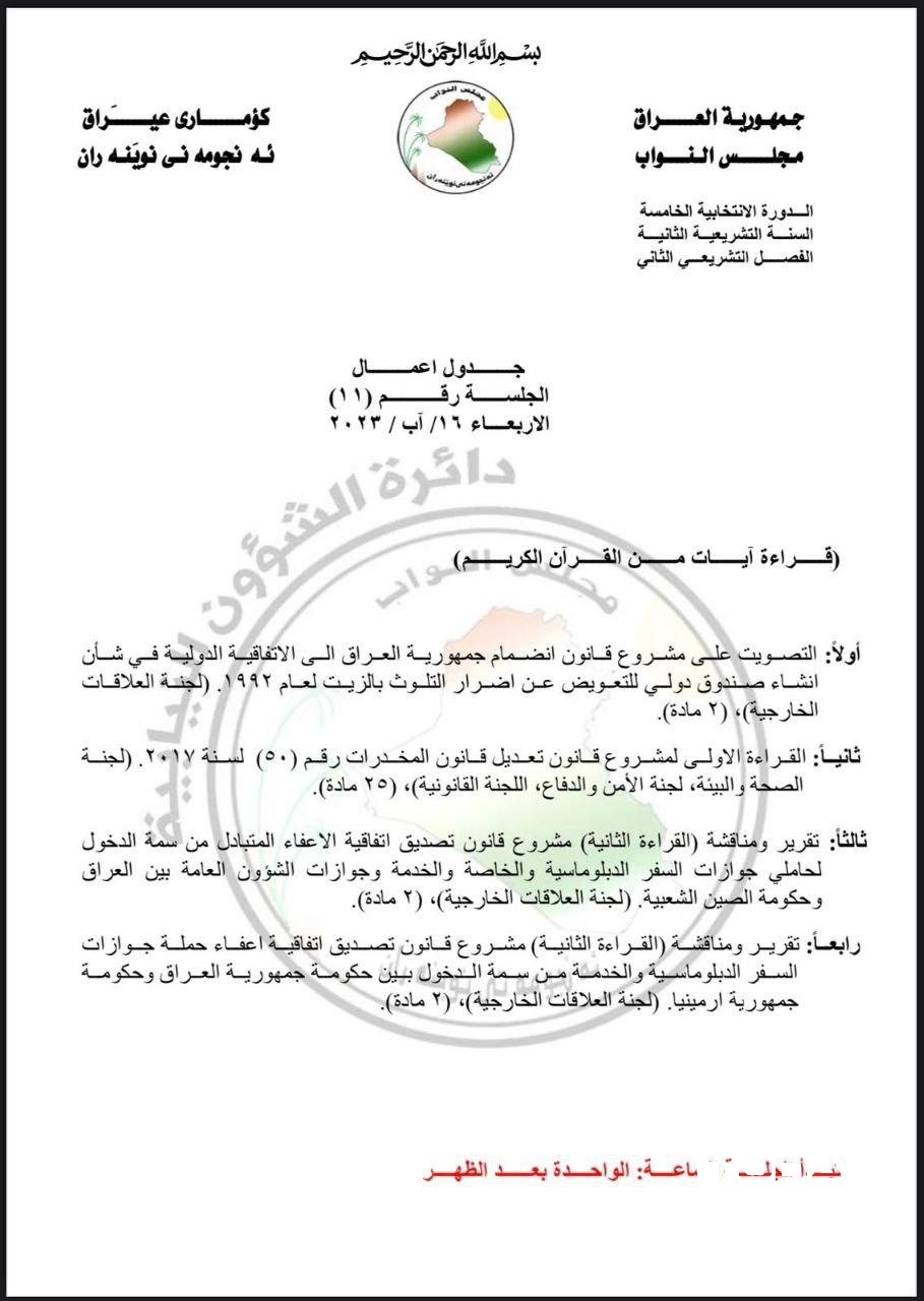 أربع فقرات في جدول أعمال البرلمان ليوم غد