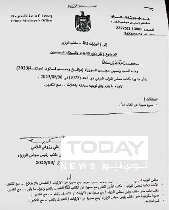 وجه رئيس الوزراء، محمد شياع السوداني، كافة الوزارات بالموافقة على نقل ذوي الشهداء في ما بين الوزارات .