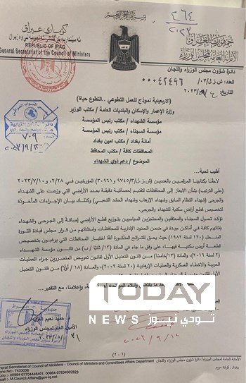 وثيقة :توجيه حكومي لمنح ذوي الشهداء اراض في مناطق جيدة