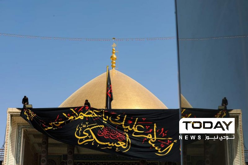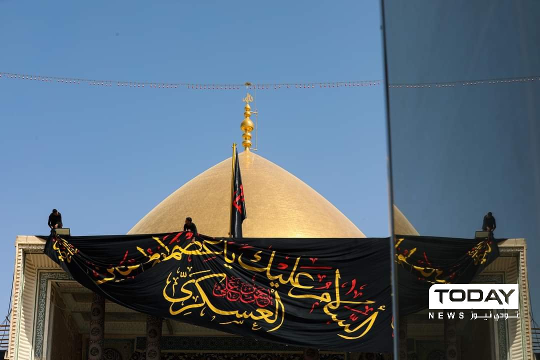 اتشحت العتبة العسكرية في سامراء بالسواد ايذاناً ببدء مناسبة ذكرى استشهاد الإمام الحسن العسكري (عليه السلام).