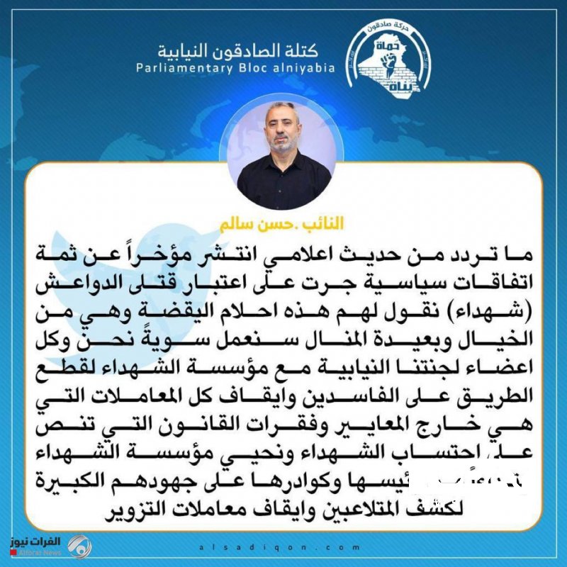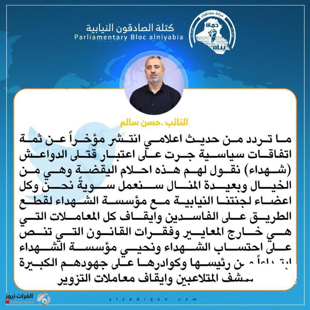 الشهداء النيابية ترد على اعتبار قتلى داعش شهداء .. "أحلام اليقضة"