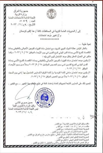 وثيقة.. تغيير جدول امتحانات السادس الاعدادي بسبب عطلة المولد النبوي