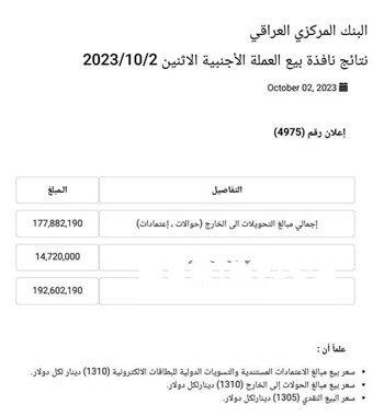 المركزي يبيع أكثر من 192 مليون دولار في مزاد اليوم