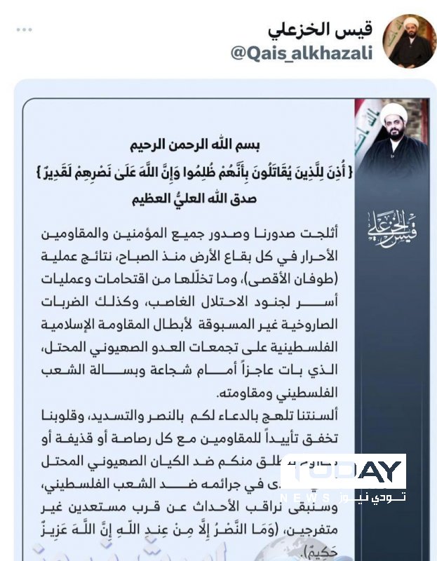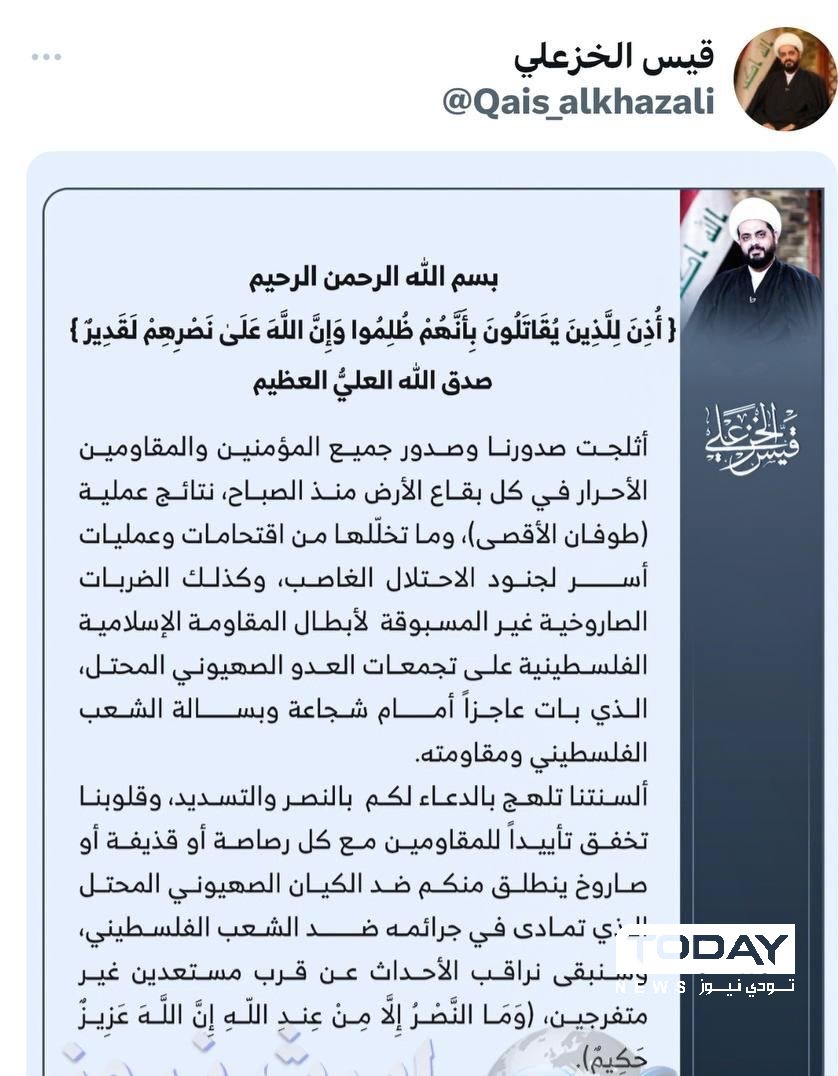 الخزعلي يدخل على أحداث فلسطين .. " مستعدين غير متفرجين "