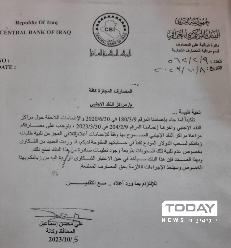 بالوثيقة.. البنك المركزي يحذر المصارف من عدم تسليم الدولار الى المواطنين