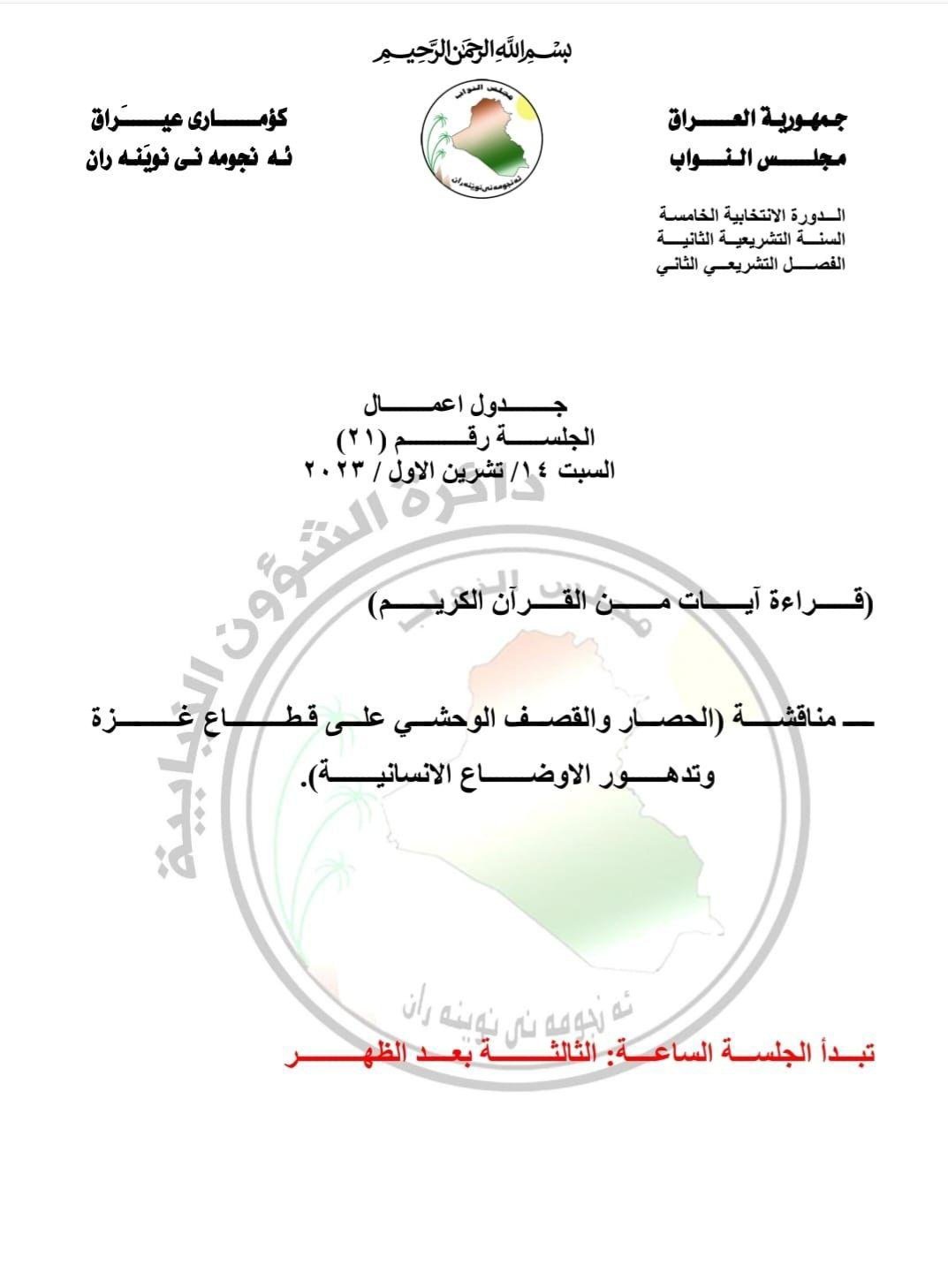 مجلس النواب يعقد جلسة خاصة غداً بشأن تطورات غزة