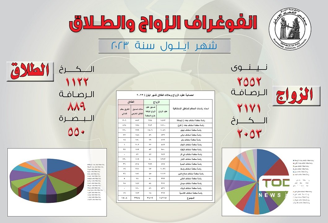 العراق يسجل نحو 5500 حالة طلاق خلال أيلول الماضي