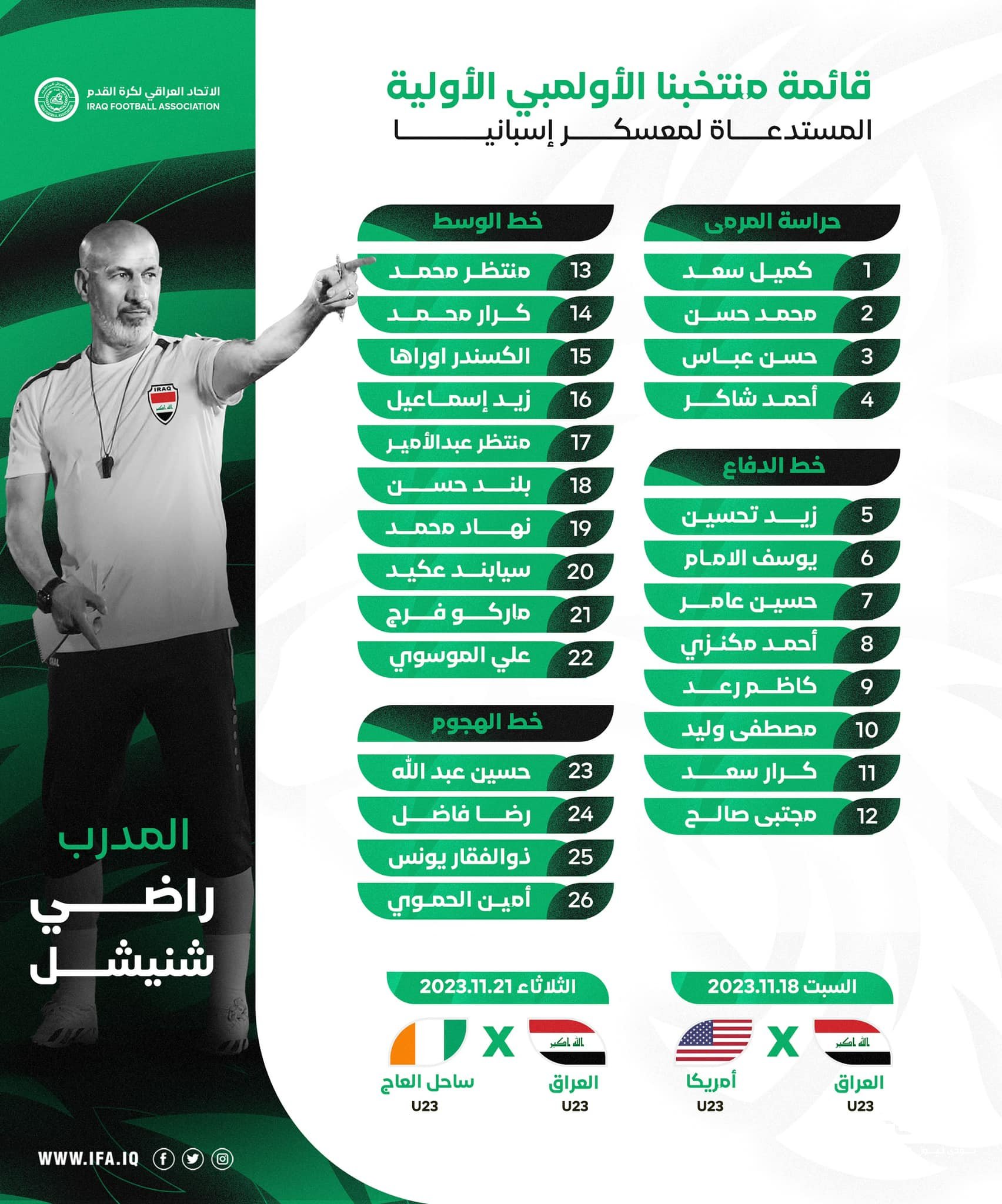 شنيشل يكشف عن قائمة الأولمبي الأولية لمواجهتي أمريكا وساحل العاج