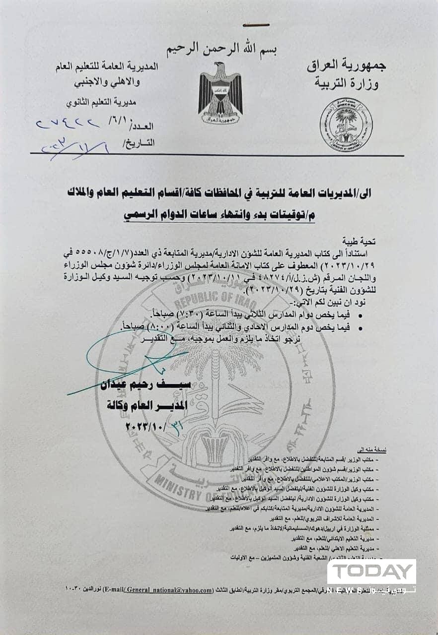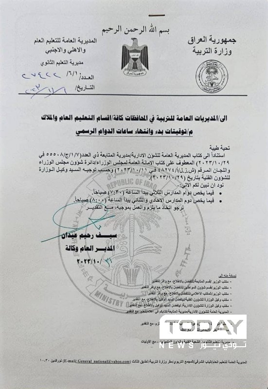 بالوثيقة.. التربية تحدد اوقات الدوام في المدارس