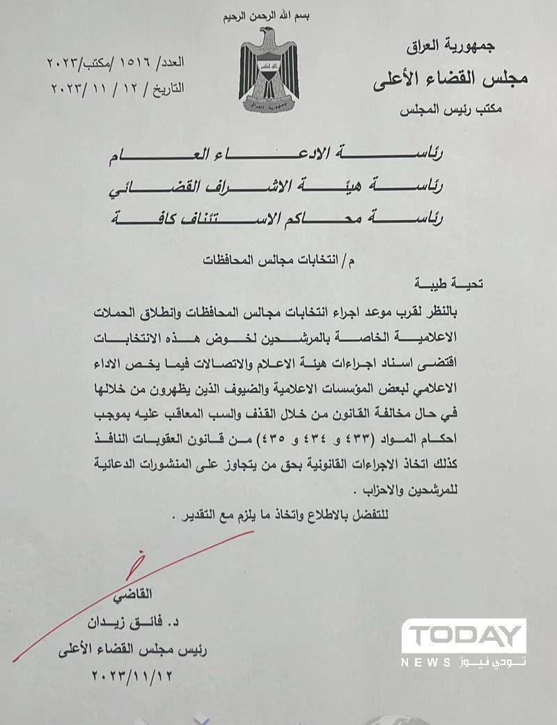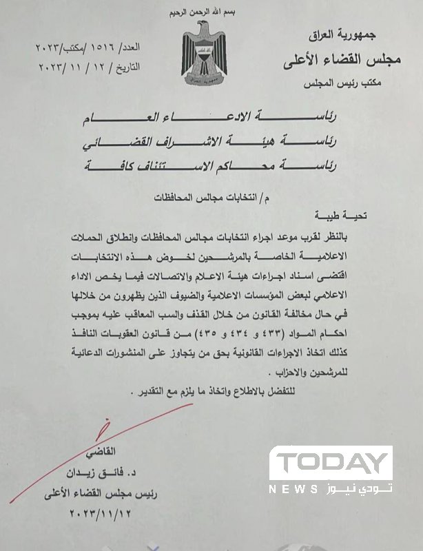 توجيه هام من القضاء يخص انتخابات مجالس المحافظات (وثيقة)