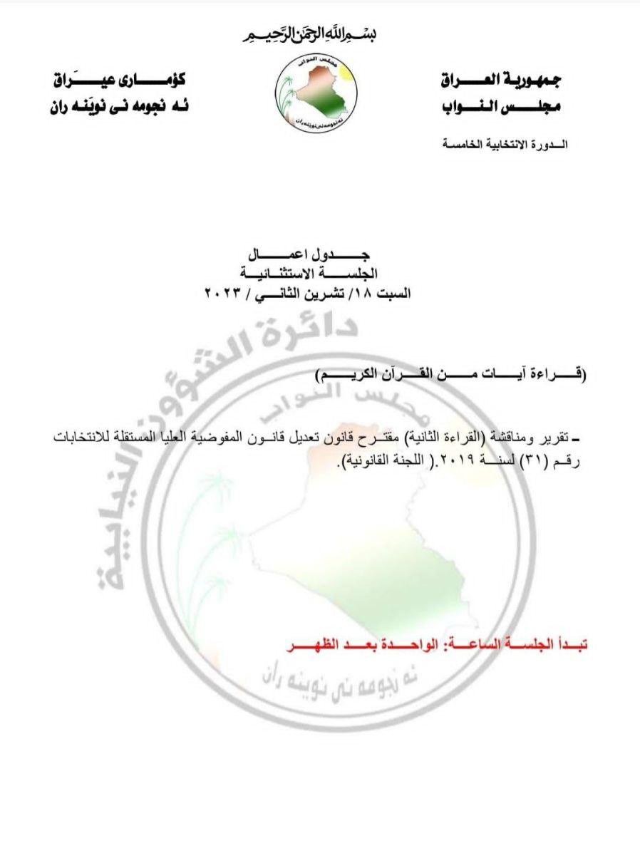 البرلمان ينشر جدول أعمال جلسة اليوم