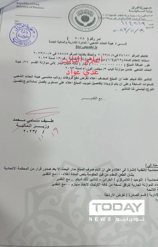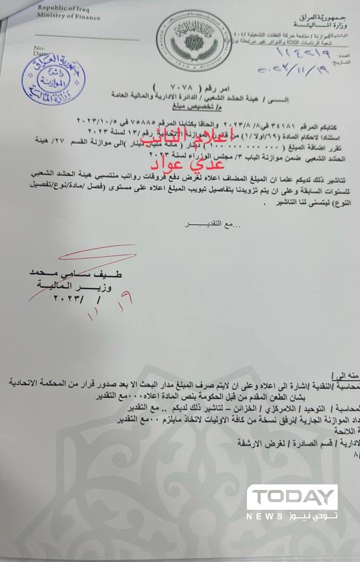 وثيقة : المالية تخصص 100 مليار دينار لصرف فروقات الحشد الشعبي