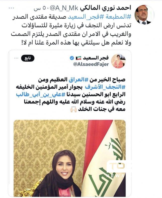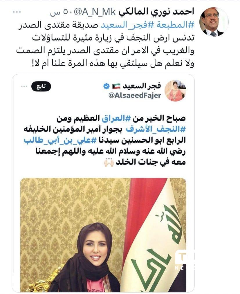 نجل المالكي عن تغريدة "صديقة الصدر " .. لم أكتبها وهذا حساب مزيف