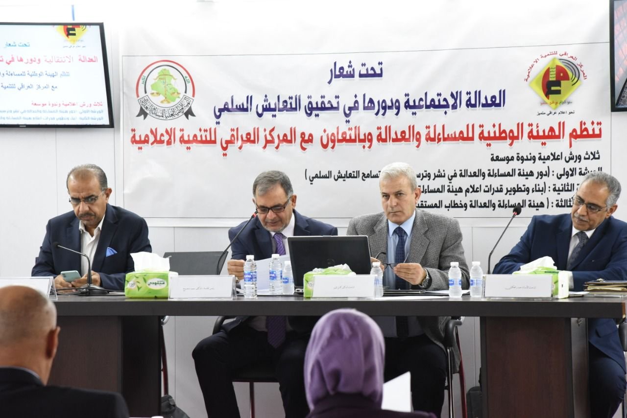 لليوم الثاني على التوالي تواصل دائرة العلاقات والإعلام في هيئة المساءلة والعدالة إقامة الورشة التخصصية الثانية والتي ينفذها المركز العراقي للتنمية الإعلامية في العاصمة بغداد.
