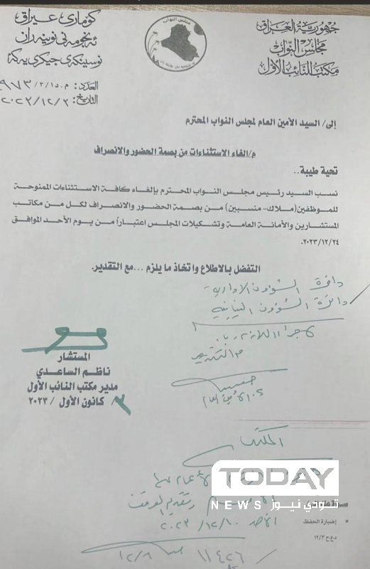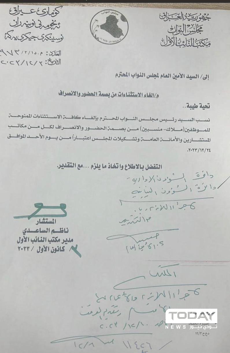 إلغاء كافة الاستثناءات الممنوحة لموظفي مجلس النواب من بصمة الحضور