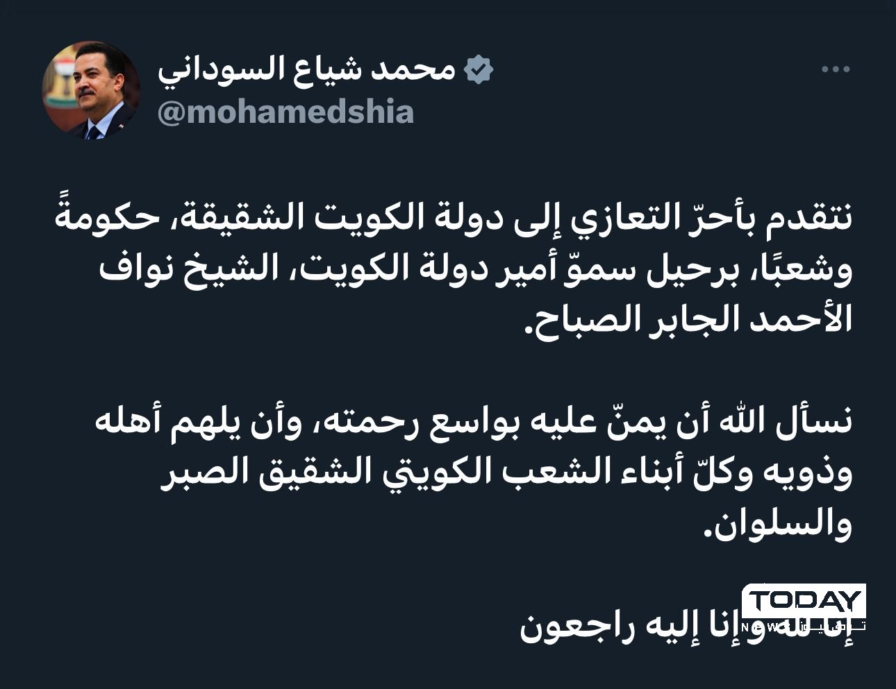 السوداني يعزي الكويت بوفاة أميرها