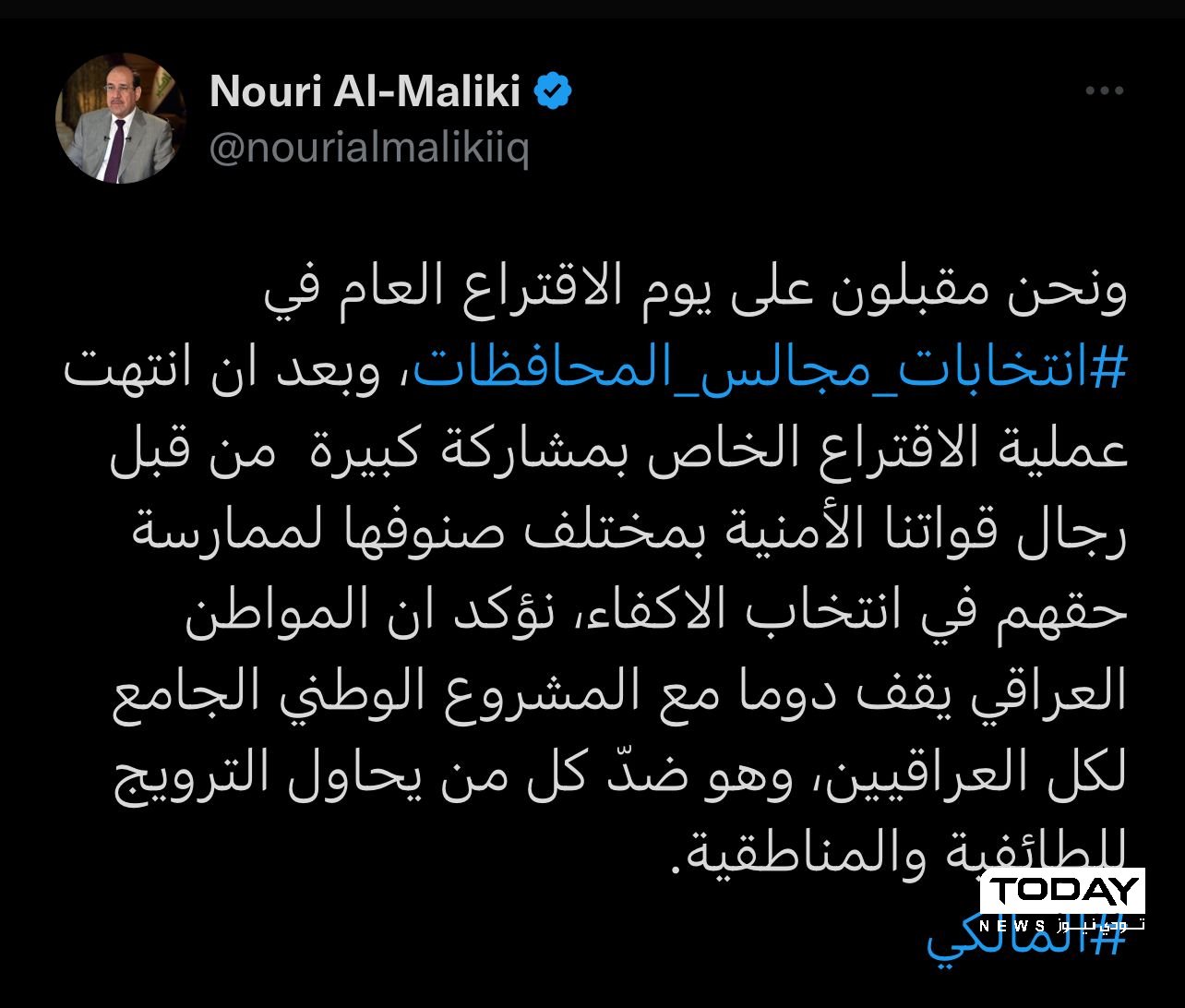 وقال المالكي في تغريدة له :