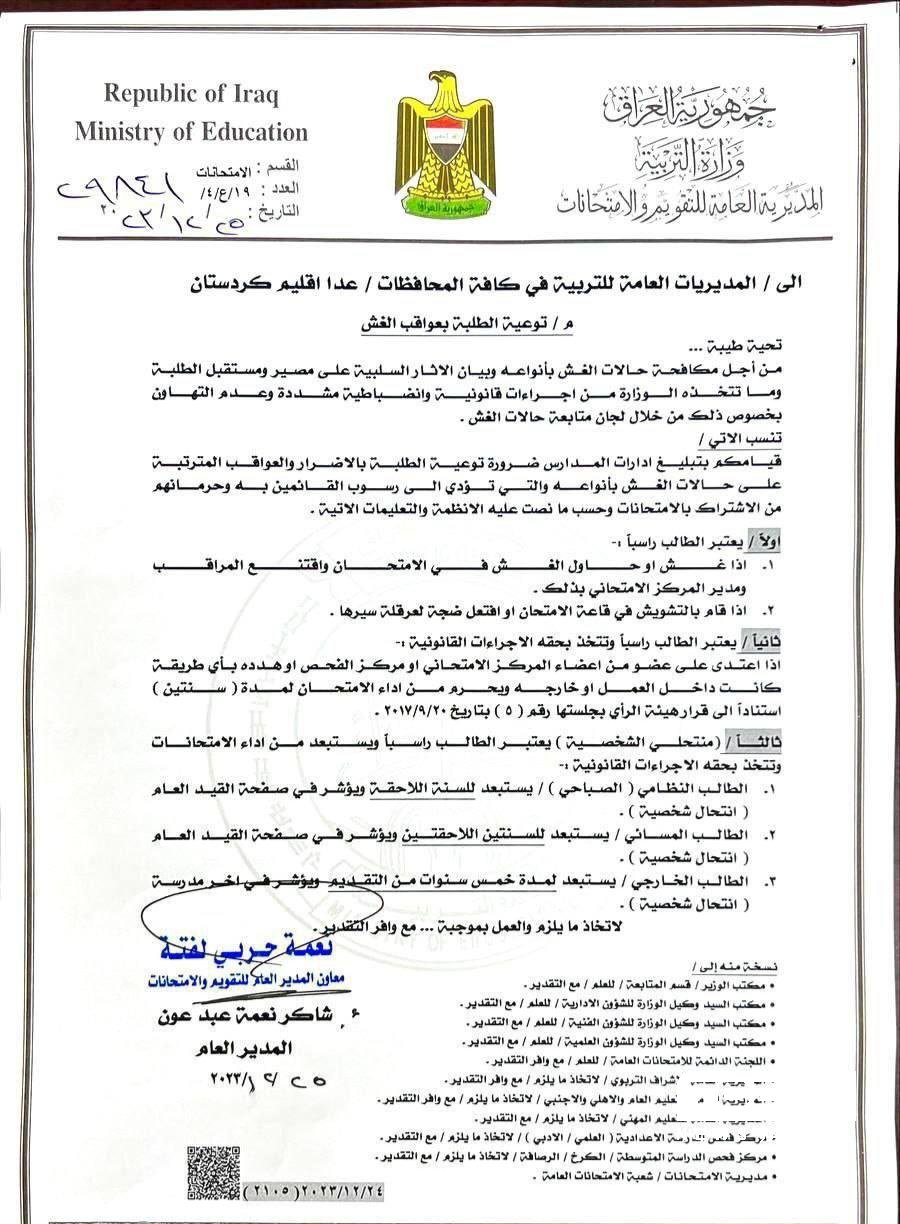 توجيه جديد من التربية لإدارات المدارس بخصوص "الغش"