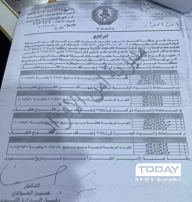 وثيقة.. تشكيل ألوية من الشرطة الاتحادية تمهيدا لتسلم أمن المحافظات