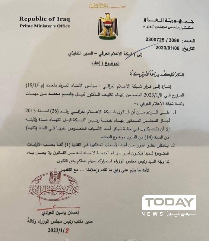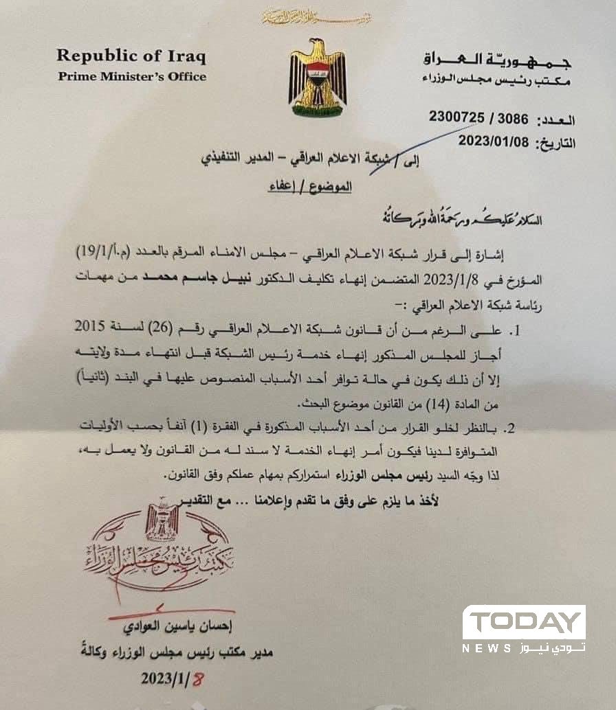 وثيقة: السوداني يُبقي نبيل جاسم على رأس شبكة الإعلام العراقي