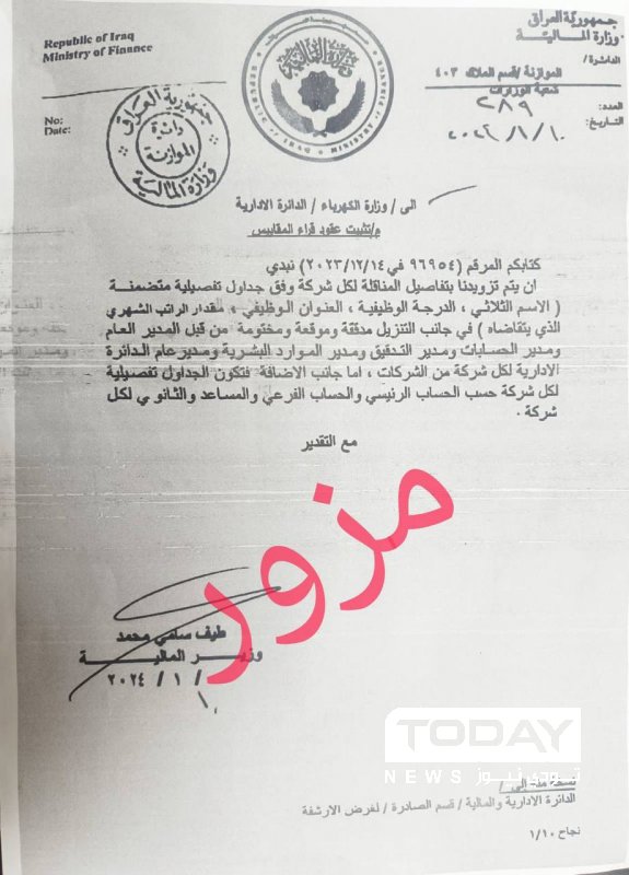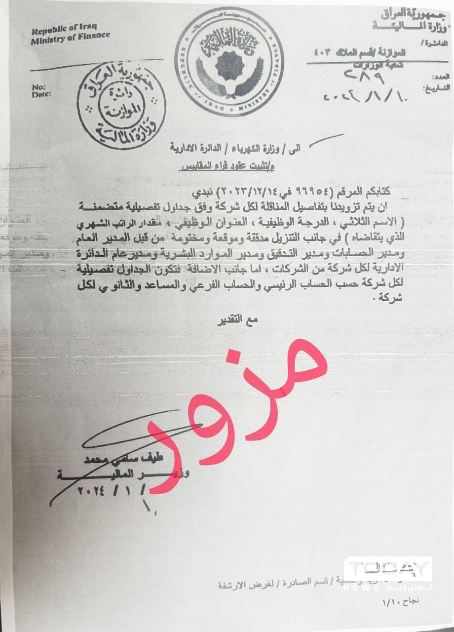 المالية تنفي إصدارها كتاب تثبيت قراء المقاييس في وزارة الكهرباء