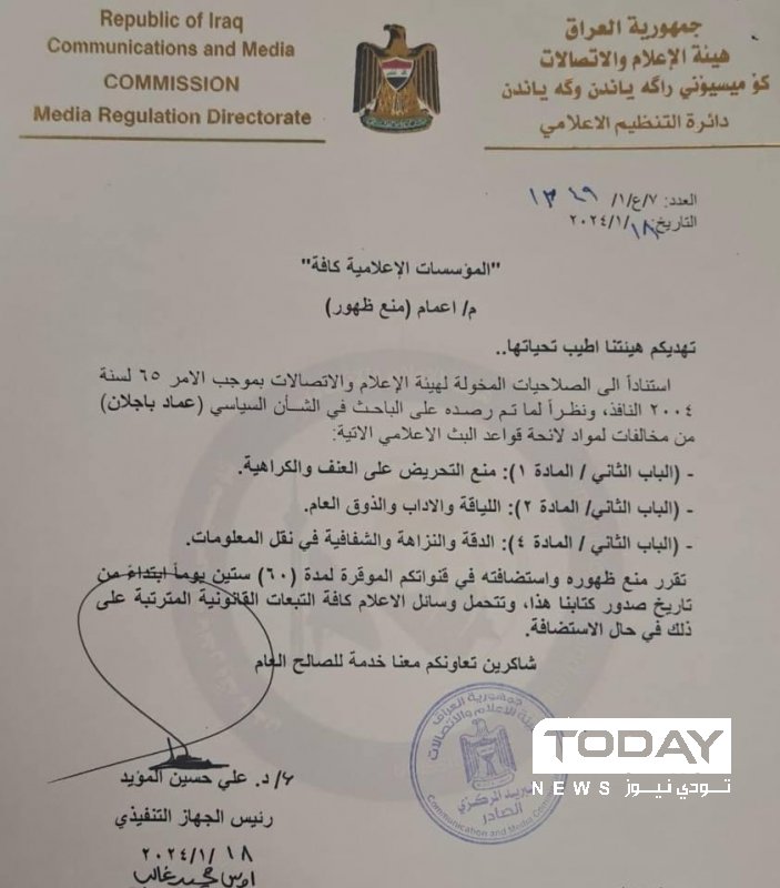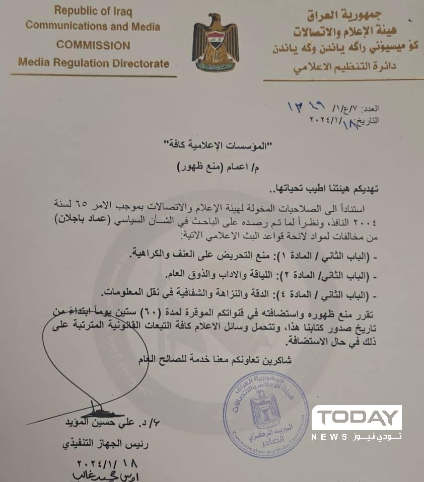 وثيقة : منع الباحث السياسي الكردي "عماد باجلان" من الظهور في وسائل الاعلام