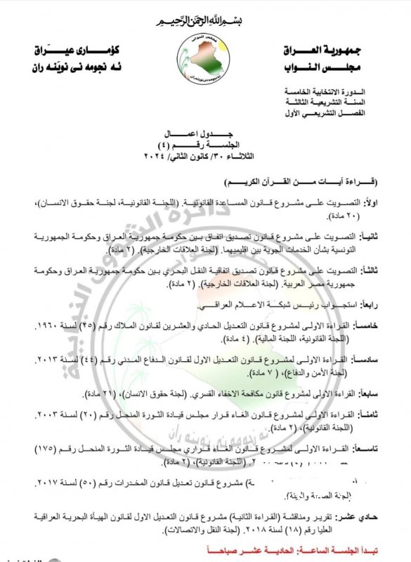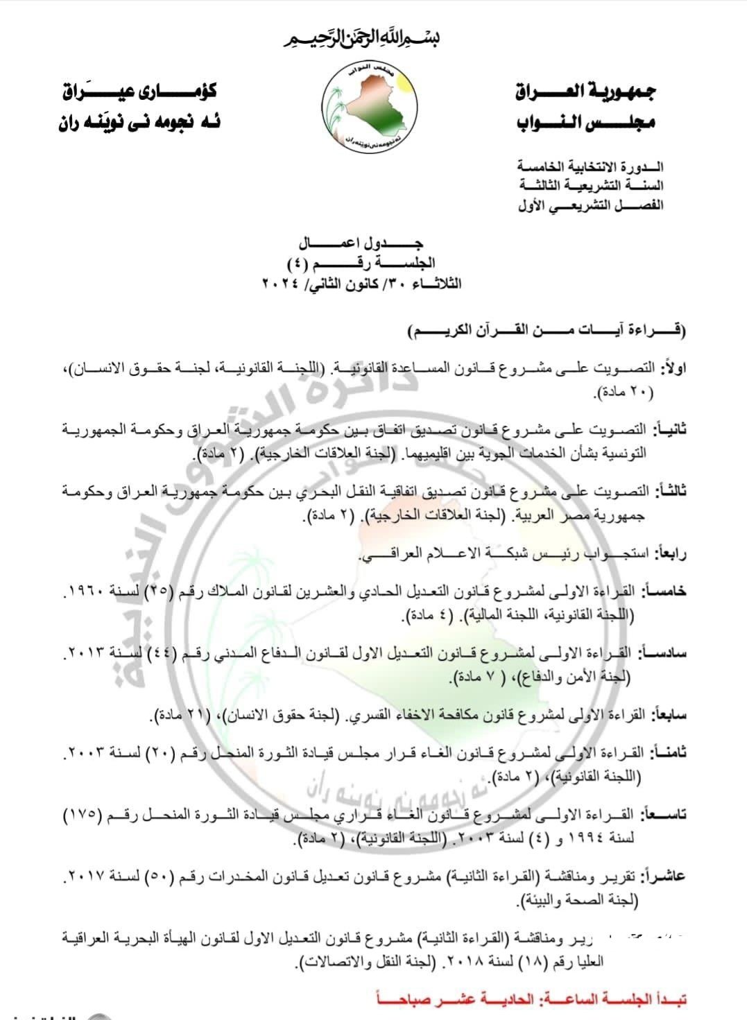 جدول أعمال جلسة مجلس النواب ليوم الثلاثاء