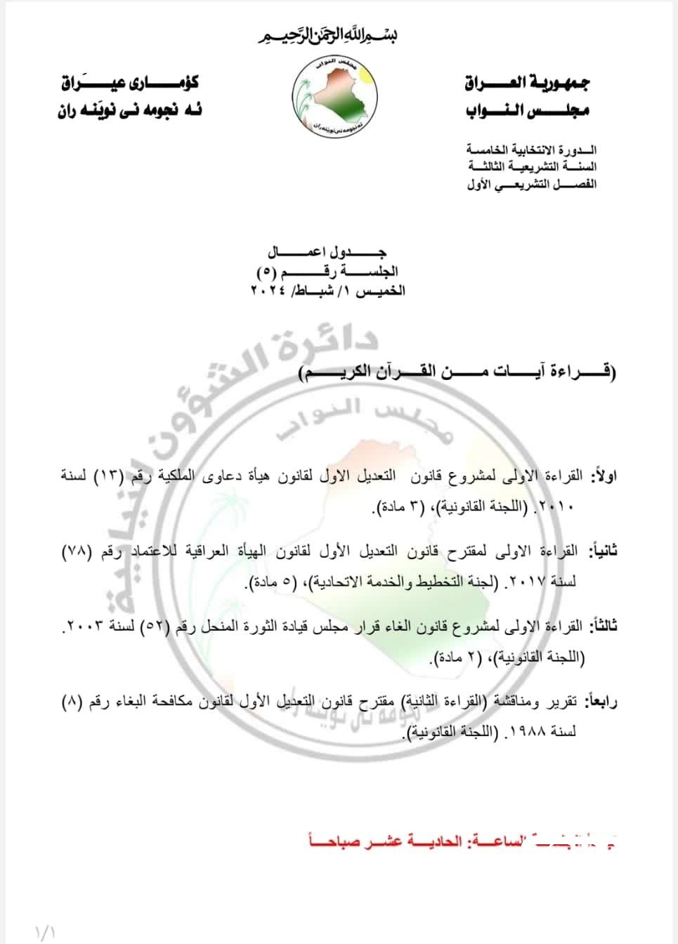 تعرف على جدول أعمال جلسة البرلمان ليوم الخميس