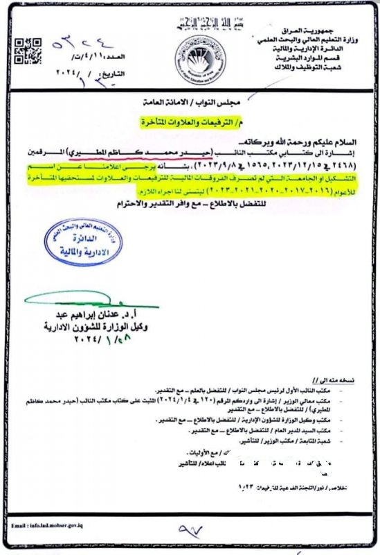 وزارة التعليم العالي والبحث العلمي تحسم ملف الفروقات والعلاوات المتاخرة