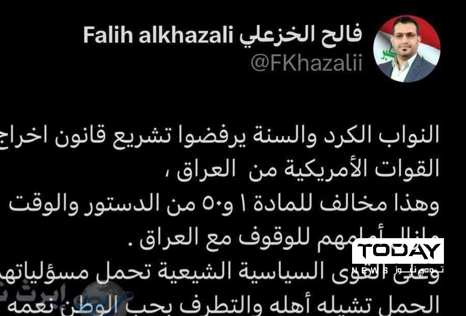 قال فالح الخزعلي النائب عن تحالف الفتح، السبت، أن النواب الكرد والسنة يخالفون الدستور العراقي بعدم موافقتهم على تشريع قانون إخراج القوات الأميركية من العراق.