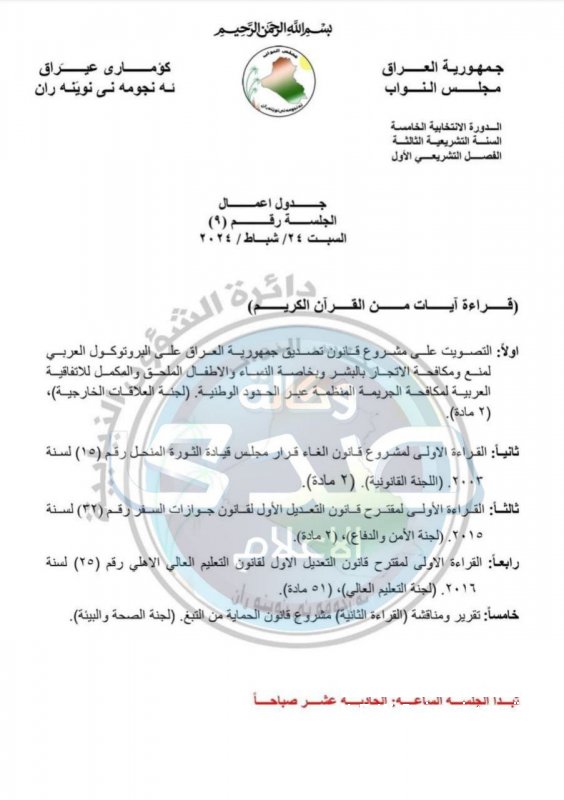 جدول أعمال جلسة اليوم السبت لمجلس النواب
