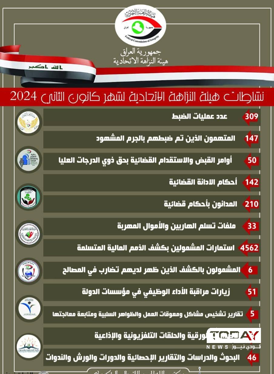 النزاهة: 50 أمر قبض واستقدام بحق الدرجات العليا والخاصة خلال الشهر الماضي
