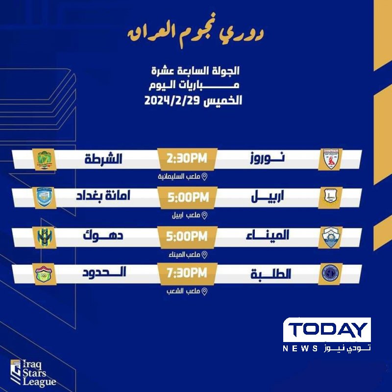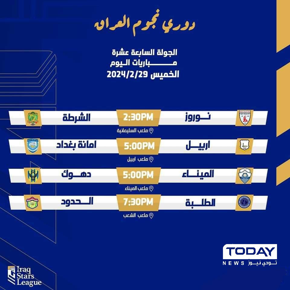 مباريات اليوم ضمن منافسات دوري نجوم العراق