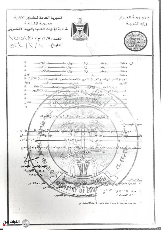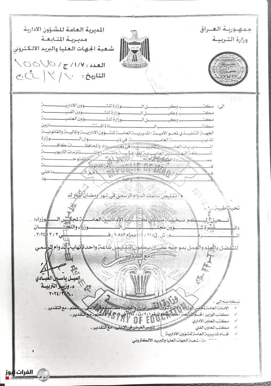 وقالت التربية في بيان تلقت TodayNews نسخة منه انه "وتنفيذا لتوجيهات الأمانة العامة لمجلس الوزراء، قررت التربية تقليص الدوام الرسمي (ساعة واحدة) للمؤسسات التربوية طوال ايام شهر رمضان المبارك، على ان تكون الساعة المقلصة من نهاية الدوام حصرا".