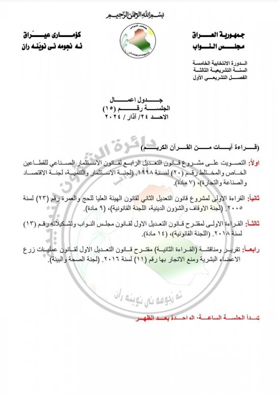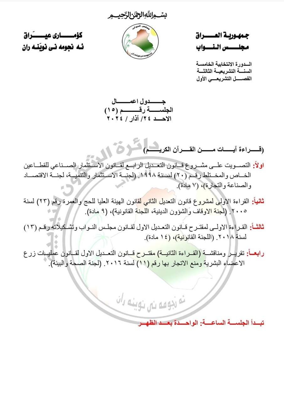 وثيقة.. جدول أعمال جلسة الأحد المقبل لمجلس النواب
