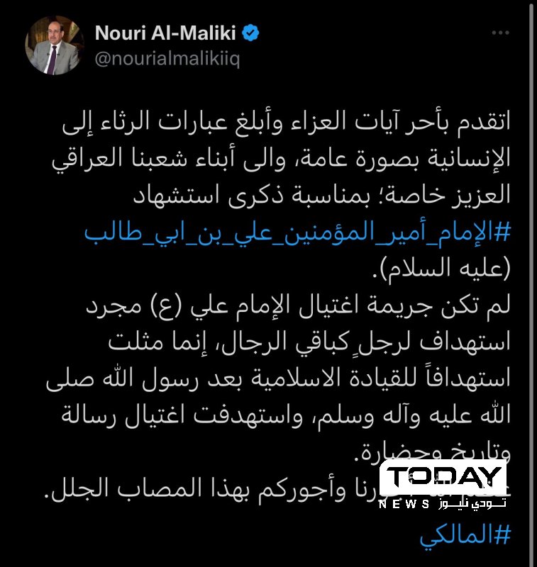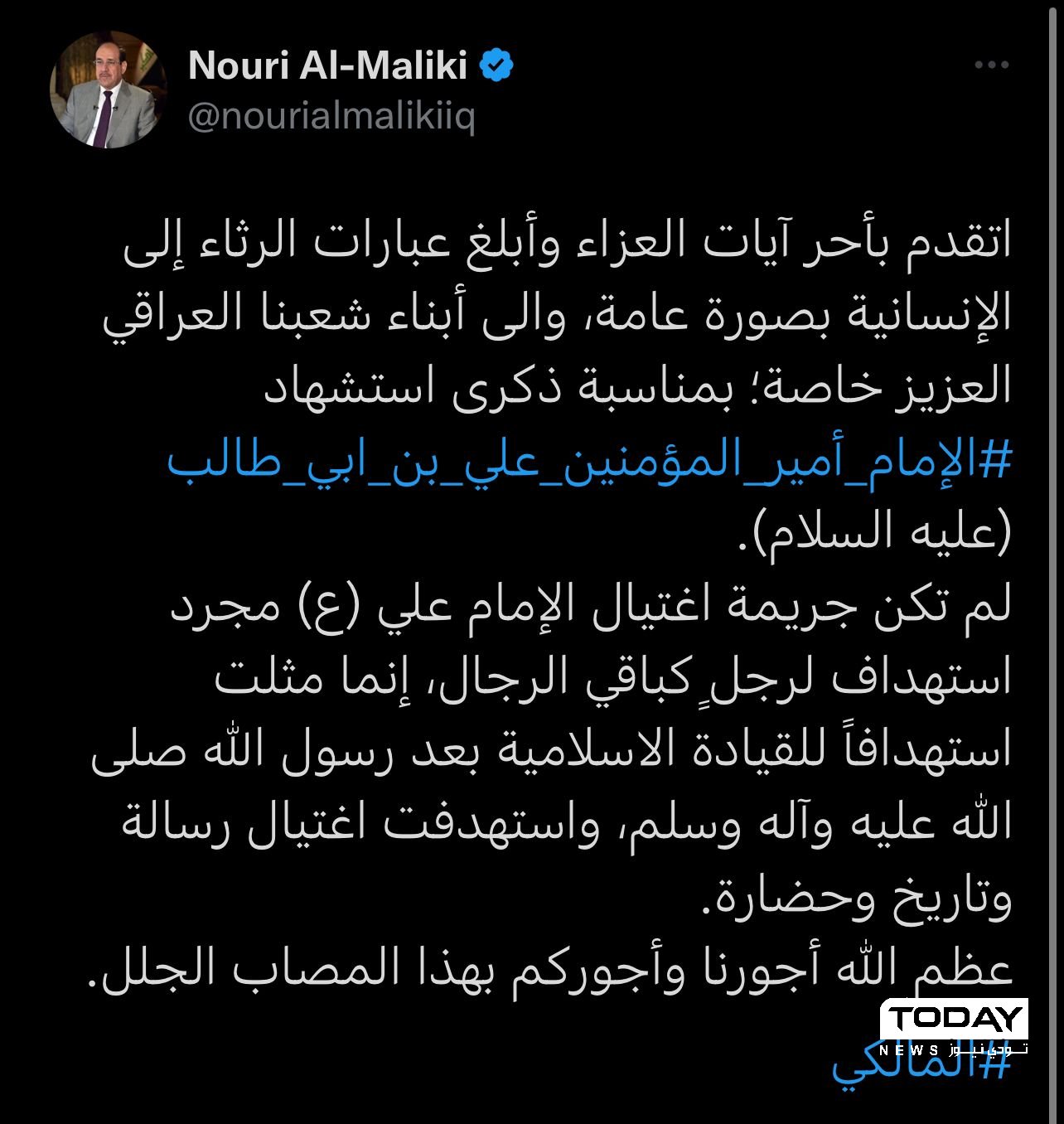 المالكي يعزي الشعب العراقي في ذكرى استشهاد الإمام علي "ع"