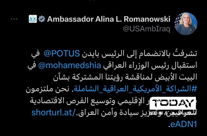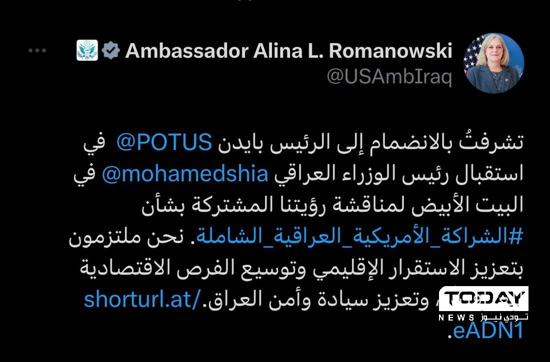 السفيرة الامريكية : تشرفنا باستقبال رئيس الوزراء العراقي