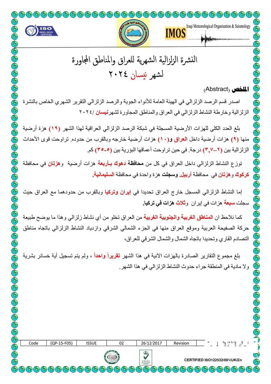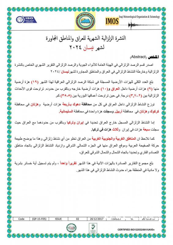 النقل تعلن تسجيل 9 هزات أرضية داخل العراق