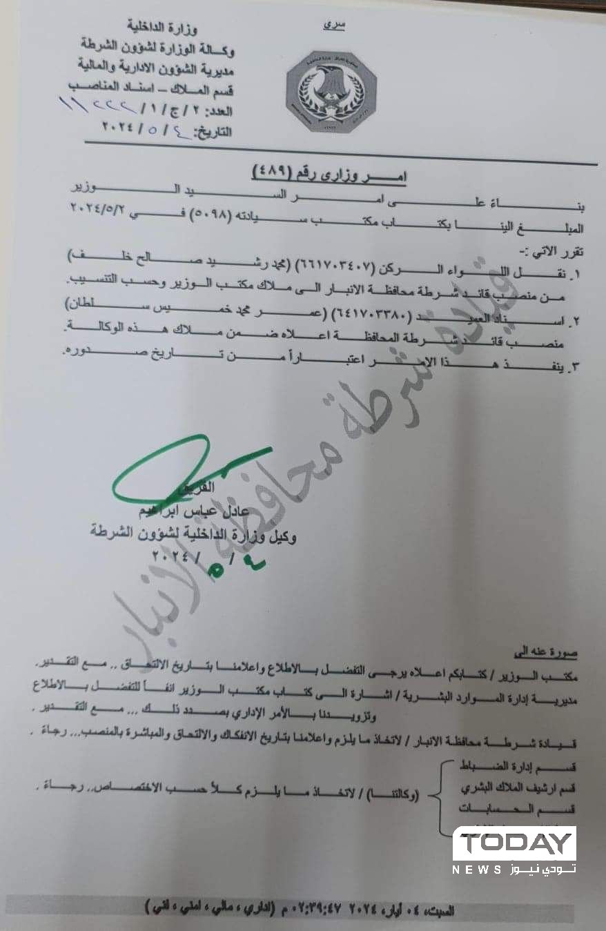 الشمري ينقل قائد شرطة الأنبار يسمي بديلا عنه