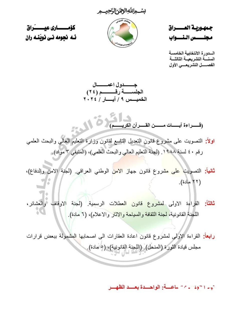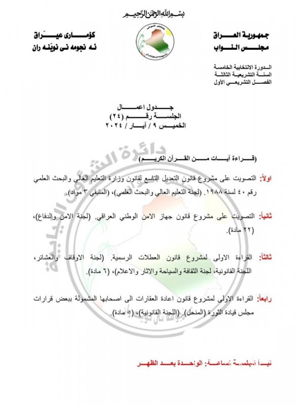 جلسة البرلمان الخميس المقبل تخلو من انتخاب الرئيس
