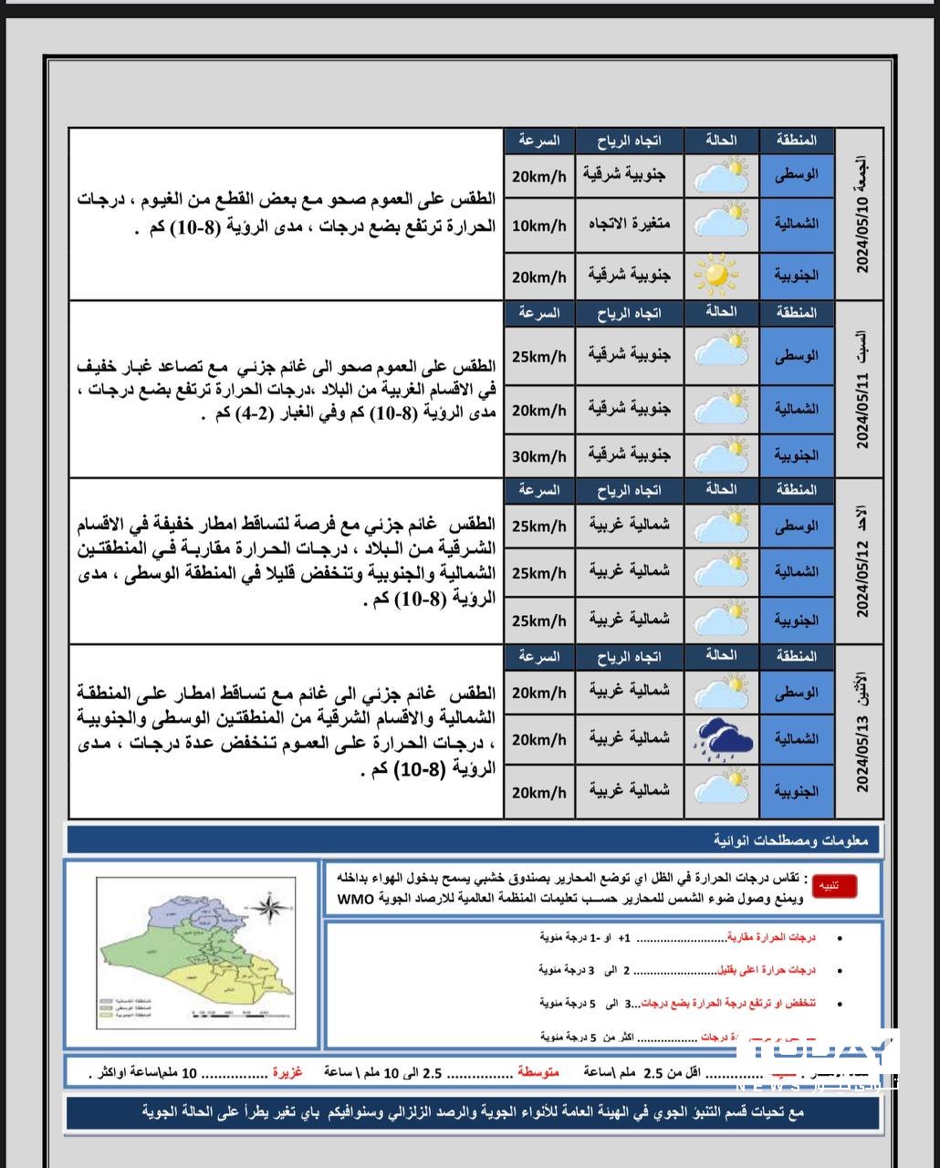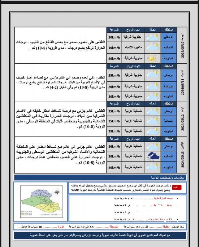 طقس العراق : غبار وأمطار خلال الأسبوع المقبل