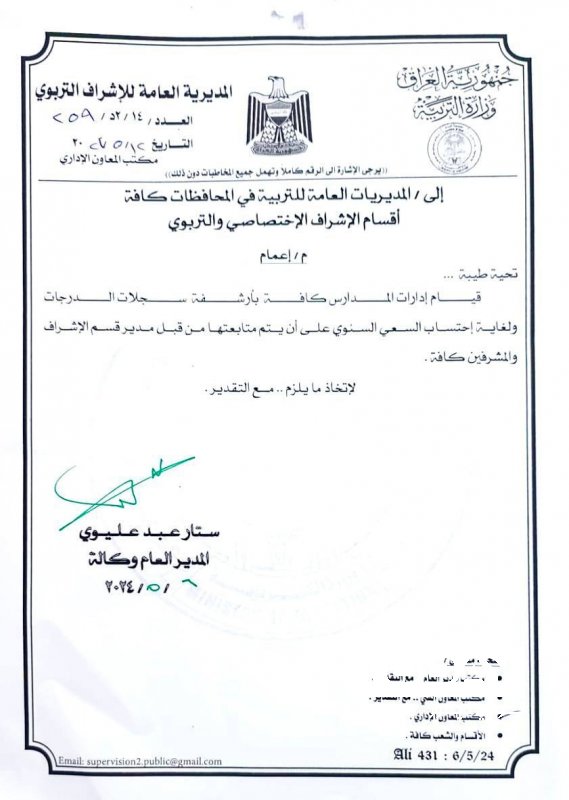 وجهت وزارة التربية/ المديرية العامة للإشراف التربوي، إدارات المدارس كافة بأرشفة سجلات الدرجات.