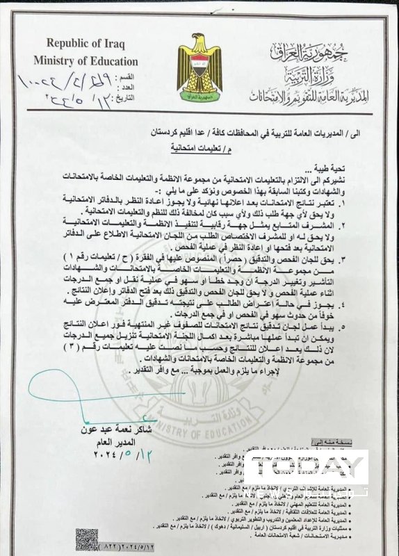 التربية تصدر توجيهاً جديداً بشأن درجة الامتحانات وتمنع اعادة النظر في الدفاتر