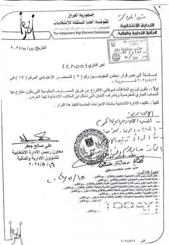 وثيقة .. الموافقة على صرف المنحة المالية لموظفي الاقتراع