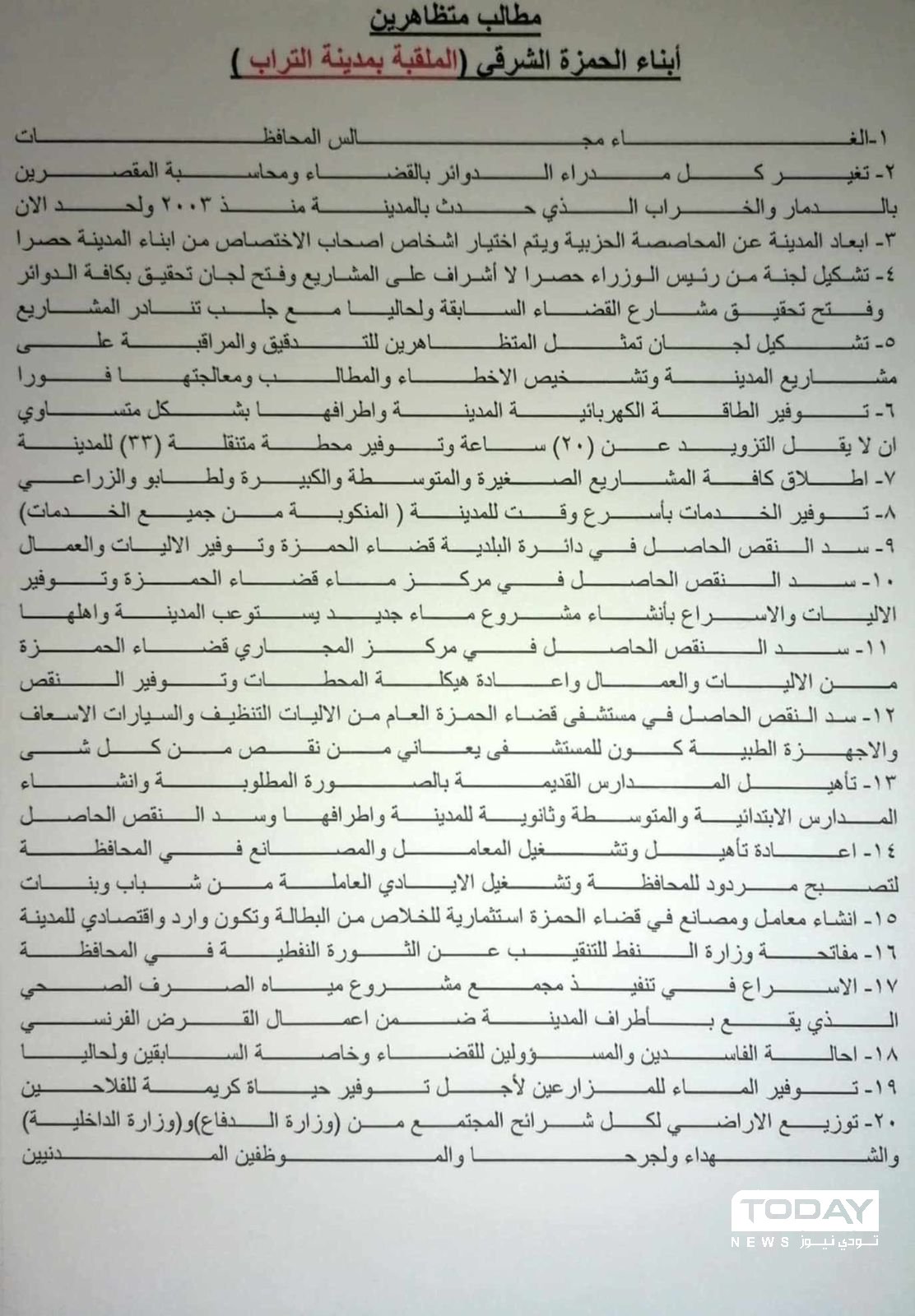 أدناه بيان يتضمن مطالب المتظاهرين..